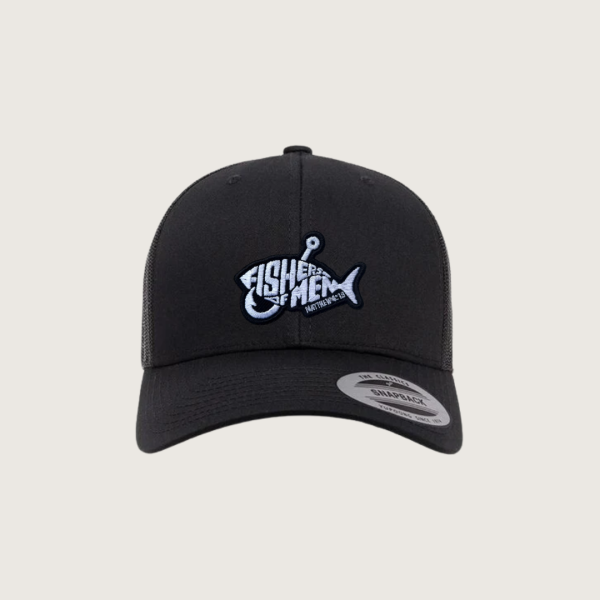 Answer the call with bold faith in the OG Fisher of Men Trucker Hat. Featuring custom Fishers of Men patch inspired by Matthew 4:19, this hat is designed for the mission. Breathable, adjustable, and perfect for any adventure.